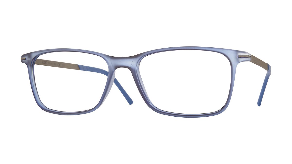 Farbe W8 - Transparente, mattblaue Mittelteil. Mattgraue Bügel. Passende Bügelenden.