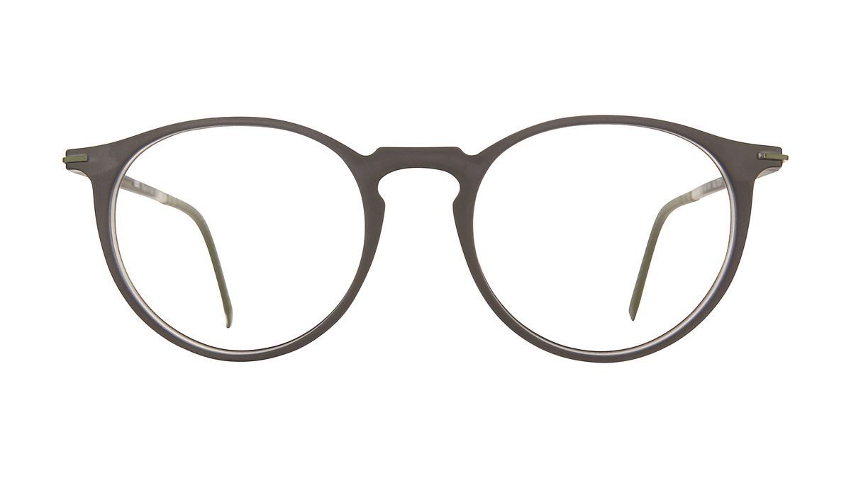 Farbe W1 - Mattschwarze Mittelteil und Bügel mit geschliffenen Kristallen im Inneren. Olivgrüner Bügelenden.