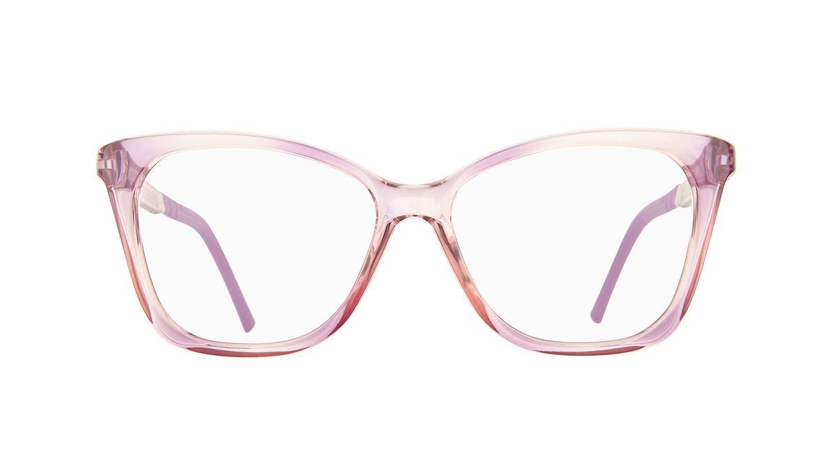 Farbe W5 - Rosafarbene und violette havannafarbene gemusterte Mittelteil und Bügel. Passende Bügelenden.