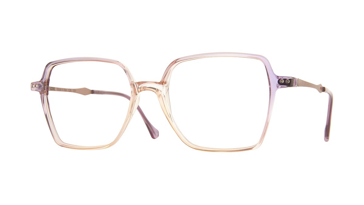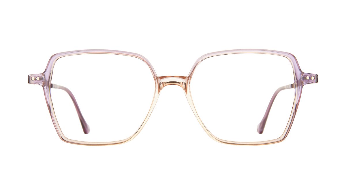 Coloration W4 - Transparent glossy peach-purple front. Metallic gold temples. Matching temple-tips.