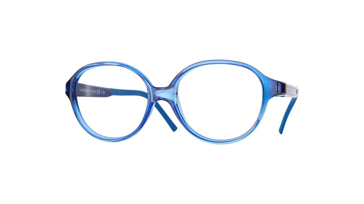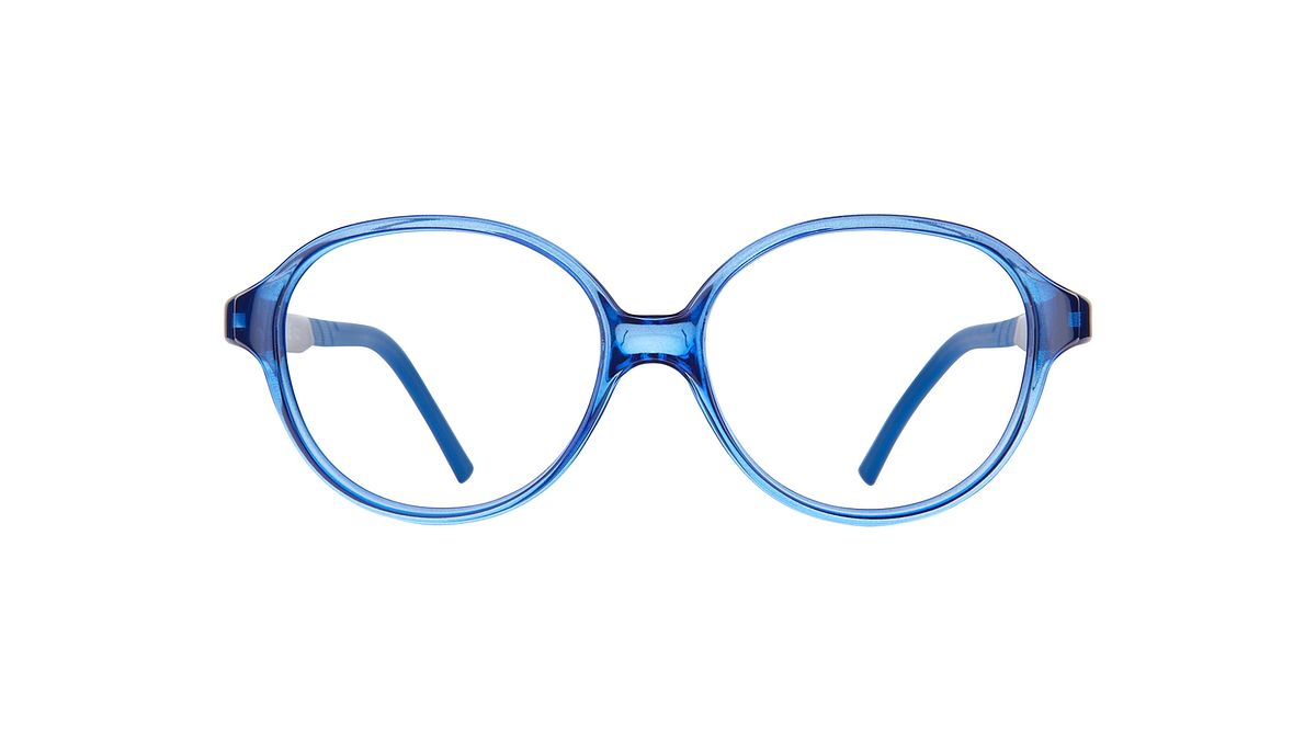Couleur W2 - Face avant bleue transparente et brillante. Les branches bleu foncé sont agrémentées d'un tissage descendant et manchons bleus assortis.