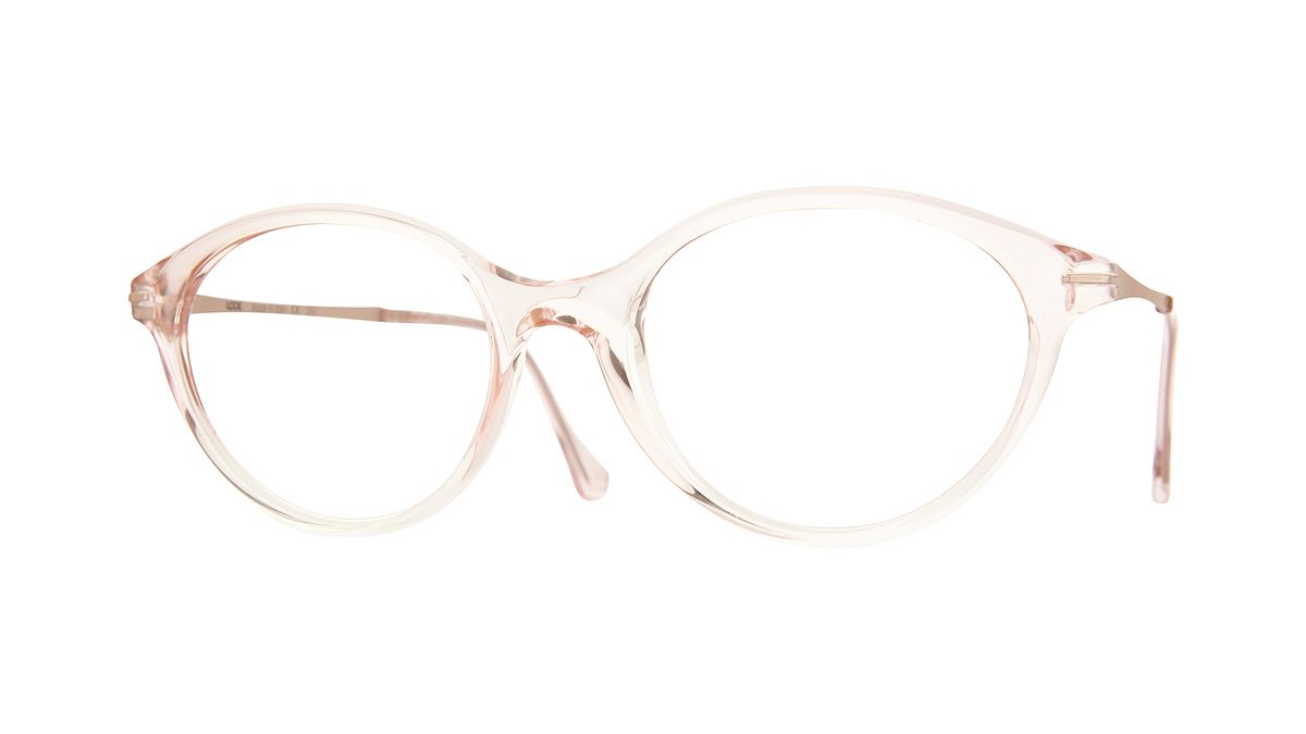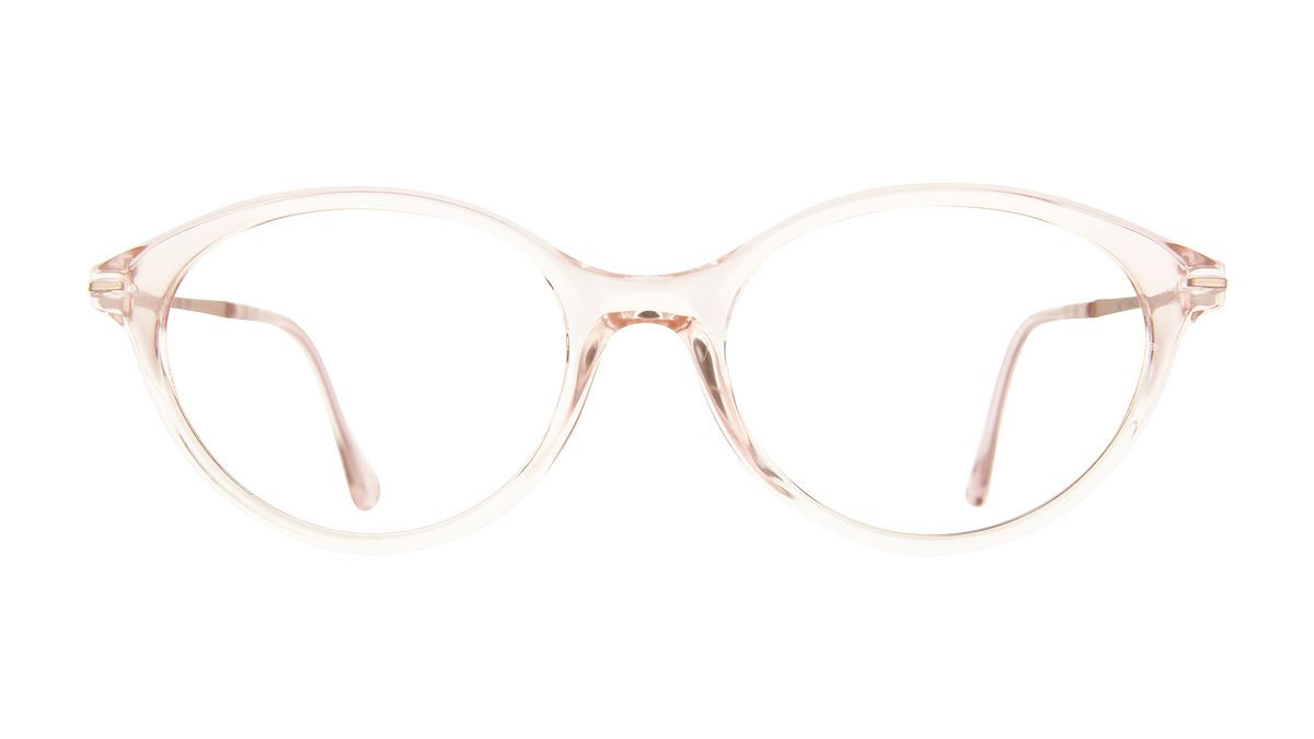 Colorazione W4 - Frontale cristallo sfumato rosa trasparente lucido. Aste oro-rosa opaco. Terminale in abbinamento.