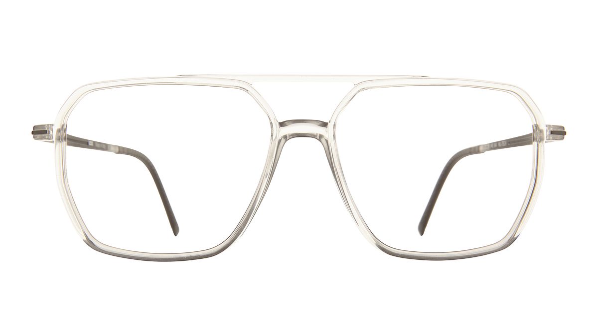 Colorazione W4 - Frontale grigio chiaro trasparente lucido. Aste esterno nero opaco con interno grigio chiaro trasparente opaco. Terminale nero.