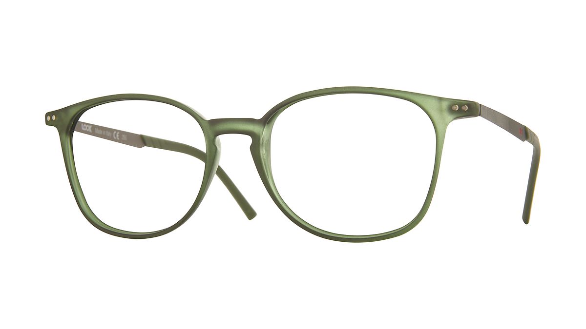 Colorazione W3 - Frontale verde trasparente semiopaco. Aste verde opaco. Terminale in abbinamento.