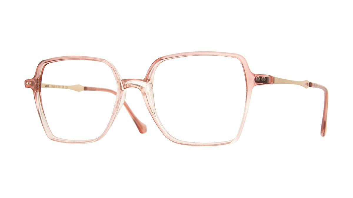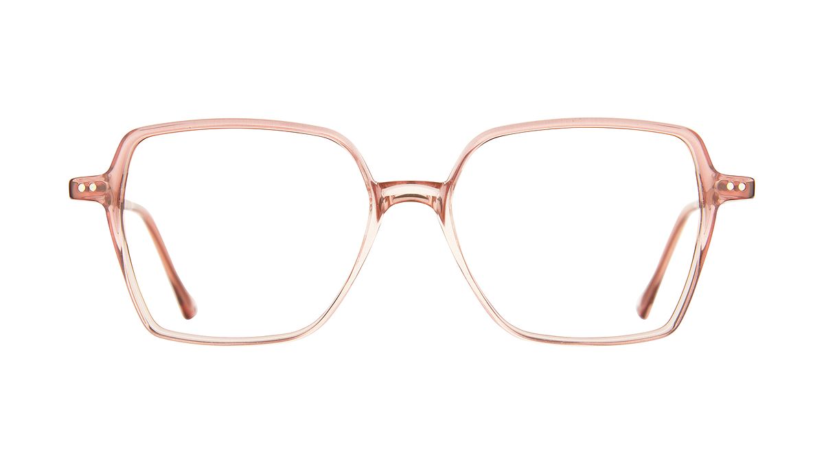 Colorazione W2 - Frontale rosa trasparente lucido. Aste oro rosa lucido. Terminale in abbinamento.