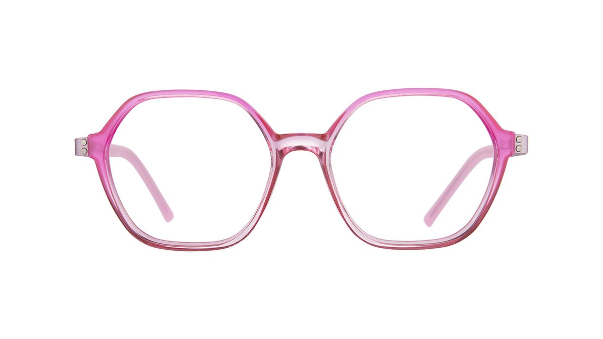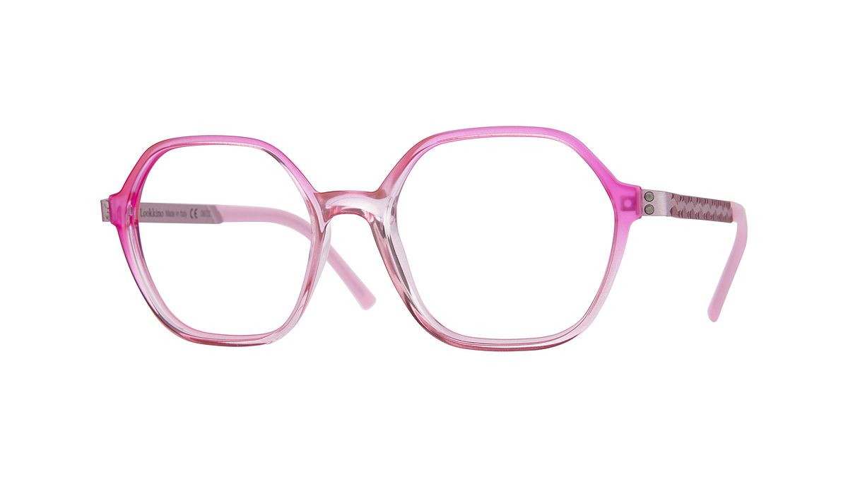 Colorazione W2 - Frontale fuxia sfumato rosa trasparente con aste viola glicine con grafica touch-color e terminali in abbinamento.